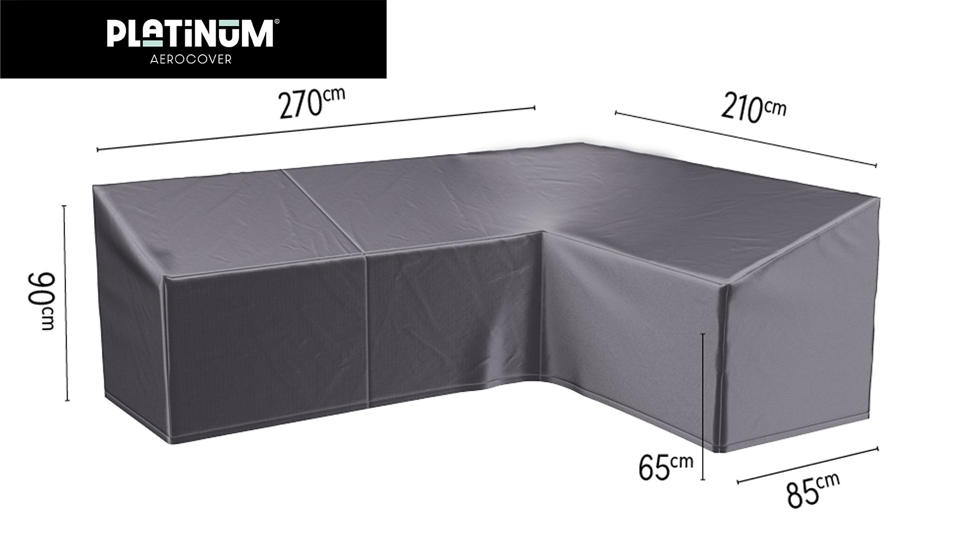 1 x Platinum AeroCover Schutzhülle Loungeset 270x210x85xH65/90 Rechts Hohe Rückenlehne L-förmig mit 90 Grad Winkel