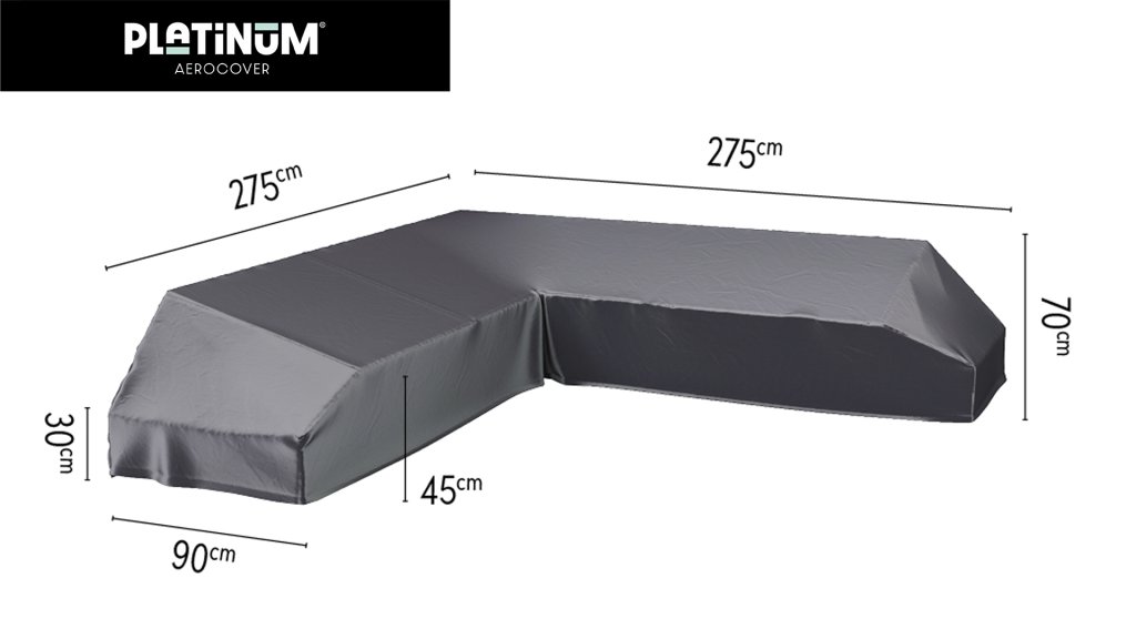 1 x Platinum AeroCover Schutzhülle Loungeset 275x275x90xH30/45/70 L-Form mit 90 Grad Ecke