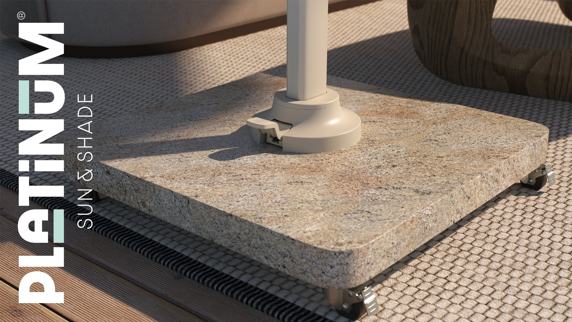 Dieser mobile Naturstein-Schirmfuß für Freiarmschirme ist aus speziell ausgewähltem Granit gefertigt und poliert. Die hohe Qualität des Granits und unsere Nachbearbeitung sorgen für eine langanhaltende Farbbeständigkeit.