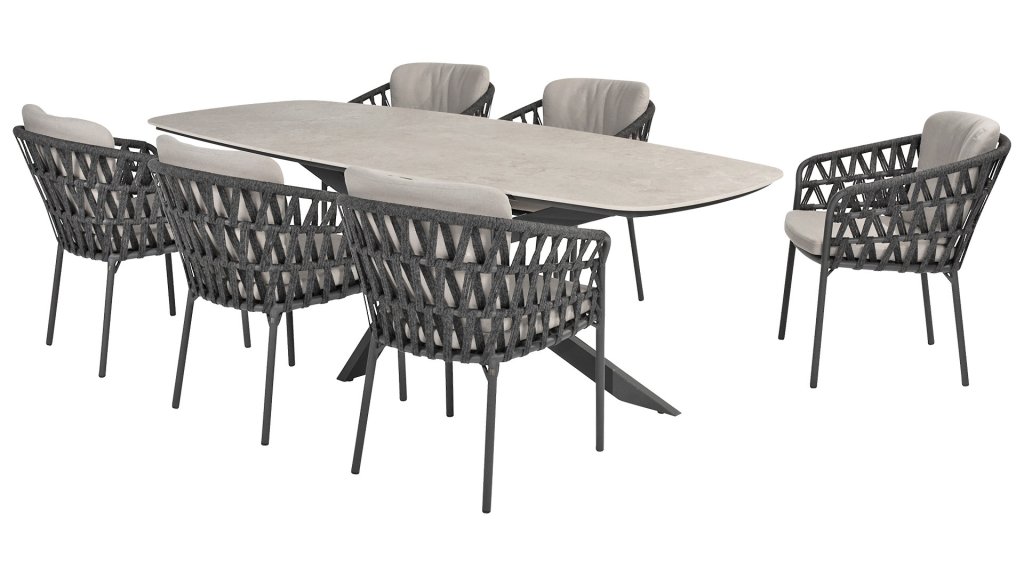1 x Taste Prado Barrel Tisch 240x105cm Keramik-Alu Anthrazit