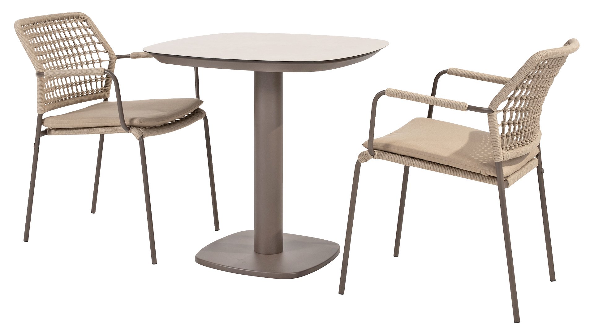 Der stapelbare Gartenstuhl 4SO Barista von Taste by 4Seasons Outdoor ist ein moderner, schlichter Esszimmerstuhl, der in vielen Gartenstilen eine gute Figur macht. Ob moderner, eleganter Garten oder naturnaher Garten – der Barista-Stuhl passt fast immer. Dieser Stuhl ist in drei Farben erhältlich: Anthrazit, Terre und Latte. Das Seilmaterial ist wetterfest und in einem Schachbrettmuster geknotet, das sich dezent in den Armlehnen wiederfindet.
