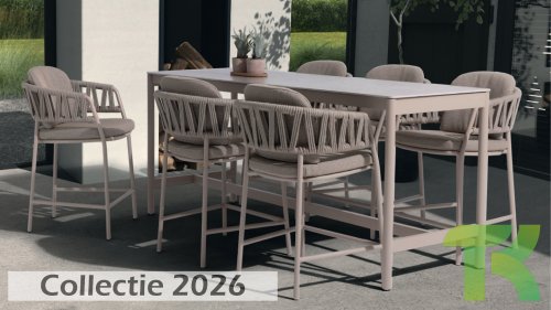 Entdecken Sie den Calma High Dining Stuhl von Taste by 4 Seasons Outdoor – modernes Design trifft auf höchsten Sitzkomfort. Als Teil der exklusiven Taste by 4 Seasons Outdoor-Kollektion bietet dieser Stuhl die perfekte Balance zwischen traditionellem Esszimmerstuhl und modernem Barhocker. Ideal für eine hochwertige Essecke auf Ihrer Terrasse, Ihrem Balkon oder Ihrer Veranda. Der Calma High Dining verfügt über einen edlen, lattefarbenen Aluminiumrahmen – leicht, robust und dank hochwertiger Pulverbeschichtung pflegeleicht. Die Sitzfläche ist stilvoll mit Taupe-Kordelgarn veredelt, was nicht nur für eine luxuriöse Optik sorgt, sondern auch flexiblen und stützenden Sitzkomfort bietet.