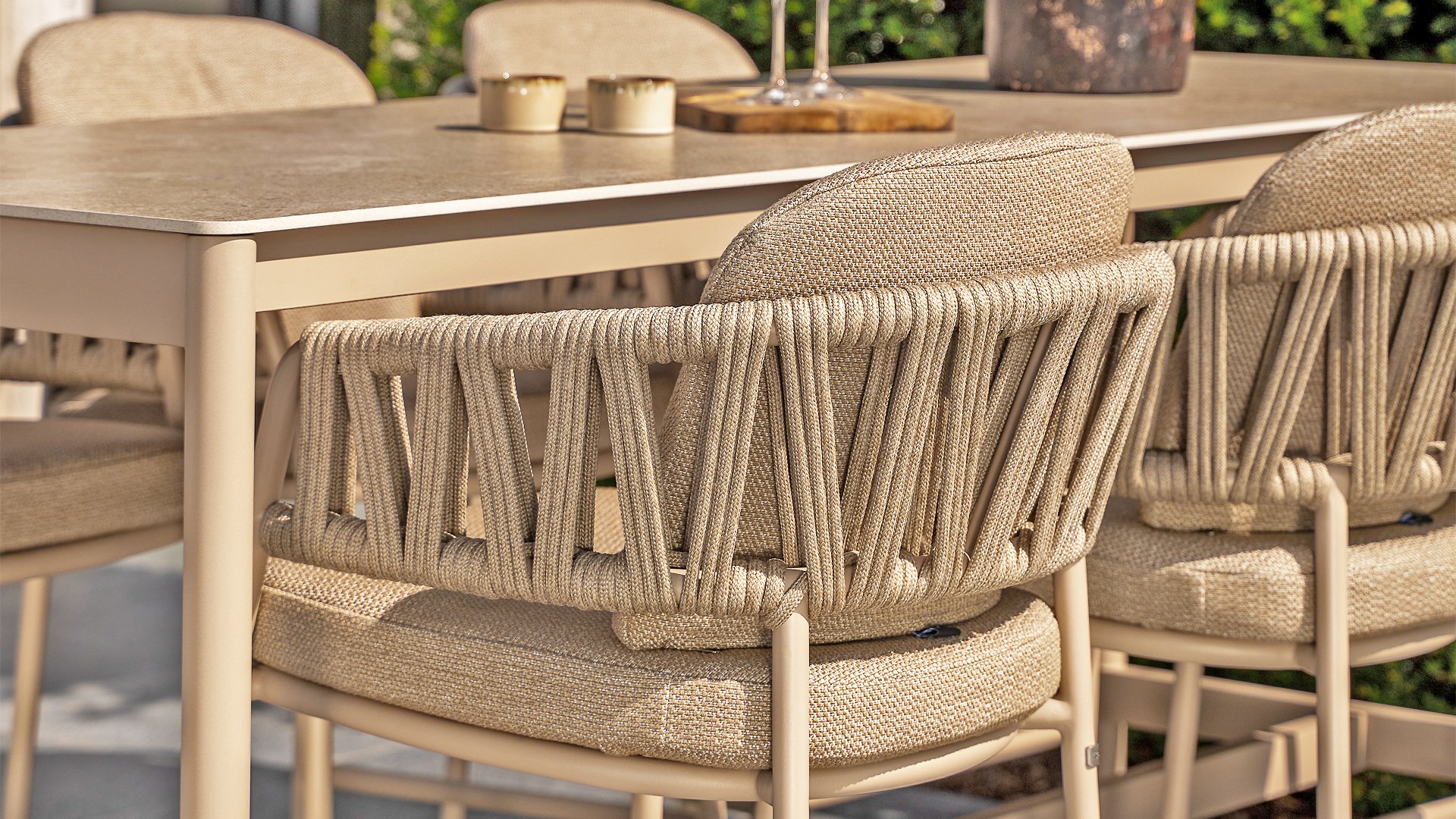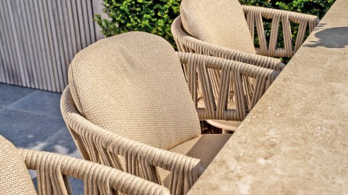 • Hervorragender Sitzkomfort: Der Sitz ist stilvoll mit taupefarbenem Seilgarn bezogen. Dieses Material verleiht dem Stuhl nicht nur eine luxuriöse, warme Optik, sondern ist auch flexibel und bietet hervorragende ergonomische Unterstützung.