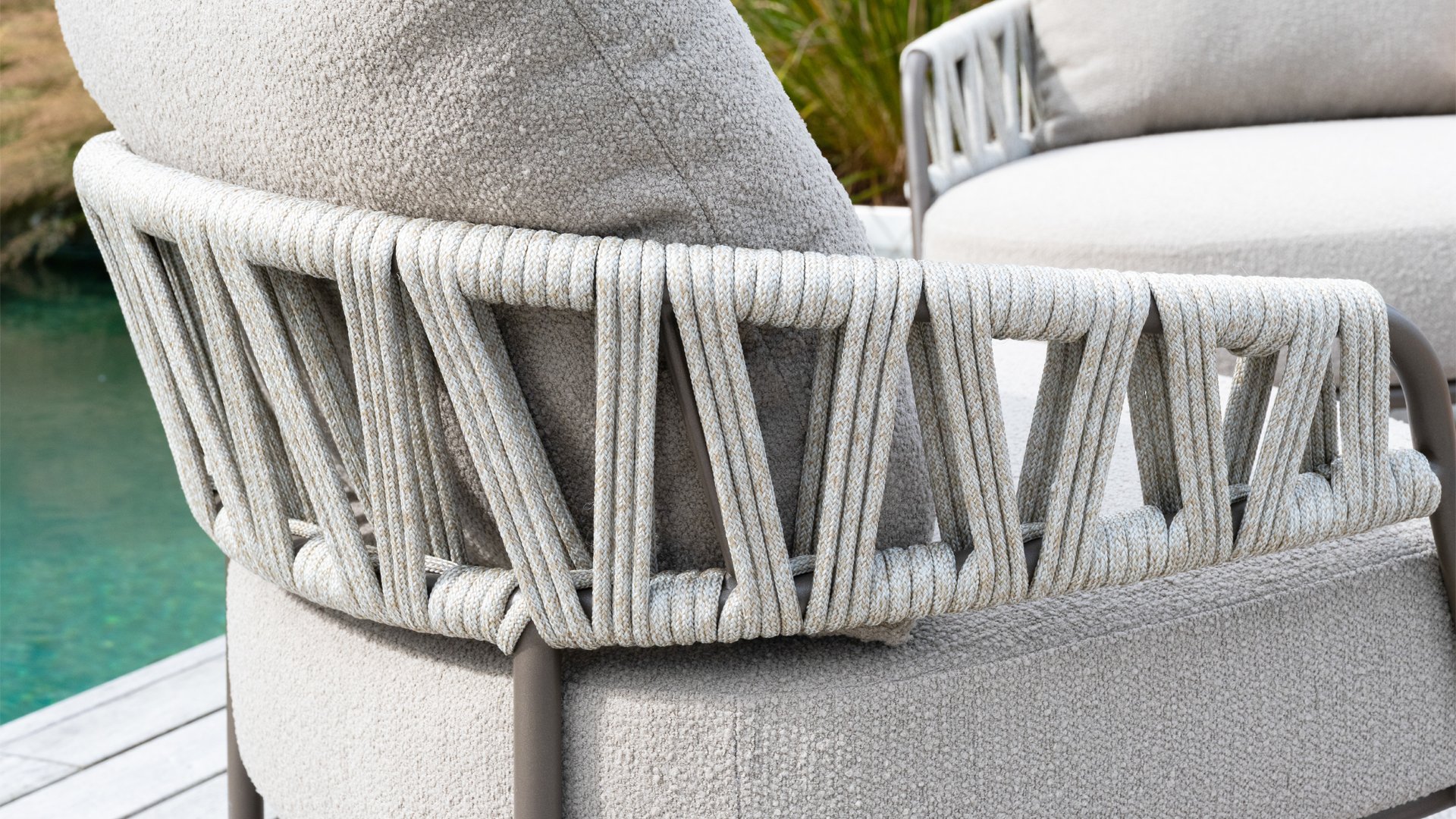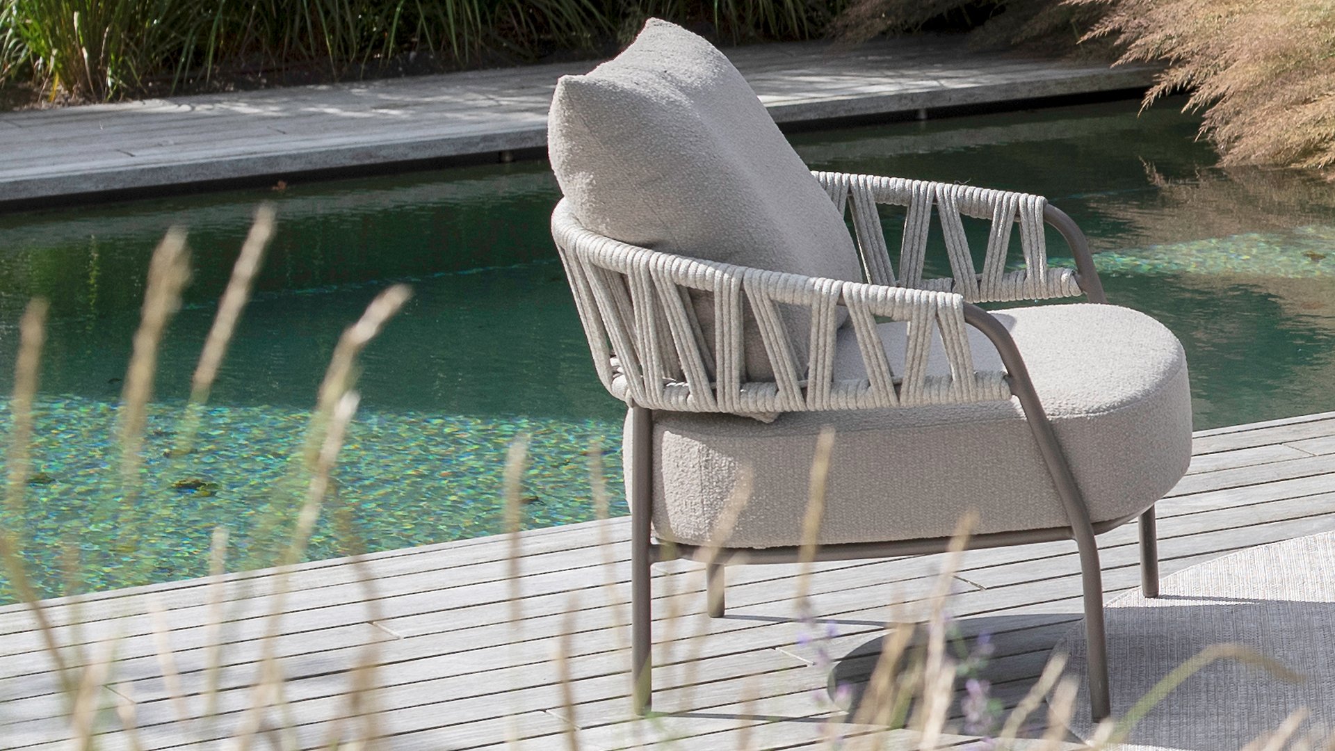 Calma von Taste by 4 Seasons – Grau-farbenes Rope, Terre-farbenes Gestell und ultimativer Sitzkomfort.