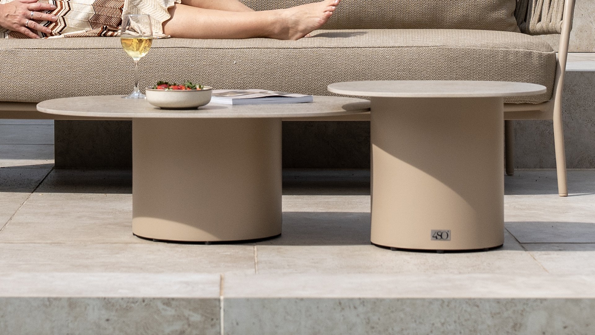 Der Sofie Couchtisch verleiht Ihrem Außenbereich eine stilvolle und praktische Note. Ob gemütliche Terrasse oder lauschige Gartenecke – dieser Tisch bietet den perfekten Platz zum Entspannen. Erhältlich in den Größen 80x70cm, 60x50cm und als Beistelltisch. Auch in Terre & Amber erhältlich.