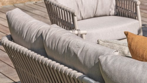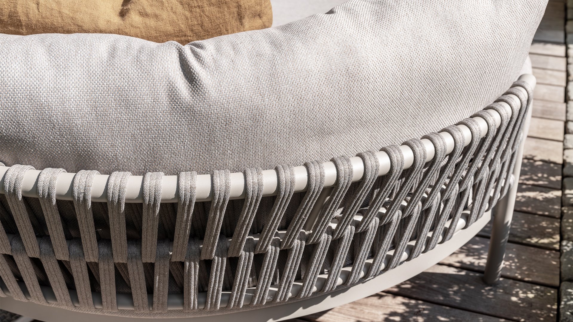Erleben Sie das moderne Design von Catalana. Stilvolles Outdoor-Leben mit der umfangreichen Catalana-Serie. Die weichen Grautöne und die wunderschönen Seilmuster verleihen dieser Kollektion ein modernes Aussehen. Spektakuläre Kurven des Loungesets, des Diningstühle und des Doppel-Liegestuhls verleihen Ihrem Garten ein luxuriöses und komfortables Upgrade.