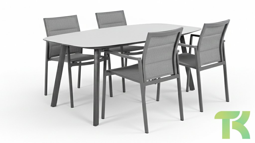 | Materialien Esstisch Sets | Pulverbeschichtet Aluminium/Stahl, Teak |