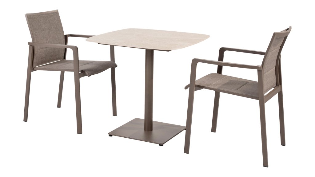 Verleihen Sie Ihrem Garten mit eleganten Linien und höchstem Komfort italienisches Flair. Der Taste by 4 Seasons Outdoor Cortina ist für alle, die Wert auf schlankes und funktionales Design legen. Das Gestell aus hochwertigem, pulverbeschichtetem Aluminium sorgt für ein modernes Aussehen und Langlebigkeit. Sitzfläche und Rückenlehne sind mit hochwertigem Olefin-Gewebe bezogen. Dieses Material fühlt sich überraschend weich an und bietet außergewöhnlichen Komfort, sodass Sie stundenlang ohne zusätzliche Kissen speisen können.