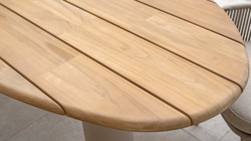 Gartenmöbel aus Teakholz bieten einen atemberaubenden Blick.Teakholz eignet sich besonders gut für den Einsatz im Außenbereich. Es ist resistent gegen Schädlinge und Pilze und widerstandsfähig gegen Sonne, Regen und Schnee. Mit der Zeit entwickelt das Teakholz eine silbergraue Patina. Gartenmöbel aus Teakholz bieten einen atemberaubenden Blick. Darüber hinaus ist es starkes Material und erfordert nur wenig Wartung. Wer die ursprüngliche Farbe des Teakholzes bevorzugt, kann durch regelmäßiges benutzen unser Pflegemittel ganz einfach das Vergrauen des Holzes verhindern.Darüber hinaus können Sie Teak mit grüner Seife reinigen. Durch Temperaturunterschiede und durch den Wechsel von Feuchtigkeit und Trockenheit können kleine Haarrisse entstehen. Es ist üblich, dass Man in dies Unvollkommenheiten findet, diese Unregelmäßigkeiten sind kennzeichnend für dieses Produkt. Diese Unregelmäßigkeiten können nie einen Anlass zu Reklamation, Garantie oder Claim formen. Es betrifft eine Unterschrift von Originalität!  Wir gewähren Garantie auf alle Produktions- und Konstruktionsfehler. Die Wirkung von Teakholz ist nicht enthalten. Wenn Sie sich für Teakholz entscheiden, erwarten wir, dass Sie diese Eigenschaften zu schätzen wissen. Eventuell auftretende Haarrisse, Äste im Teakholz und raue Oberflächen im Laufe der Zeit fallen nicht unter unsere Garantie. Diese Eigenschaften verleihen dem Teakholz seinen eigenen Charakter und sind Teil der Optik. Seien Sie vorsichtig mit einem Blumentopf oder einer Vase auf Ihrem Gartentisch aus Teakholz, da dies zu hartnäckigen Kreisen oder Farbunterschieden führen kann.