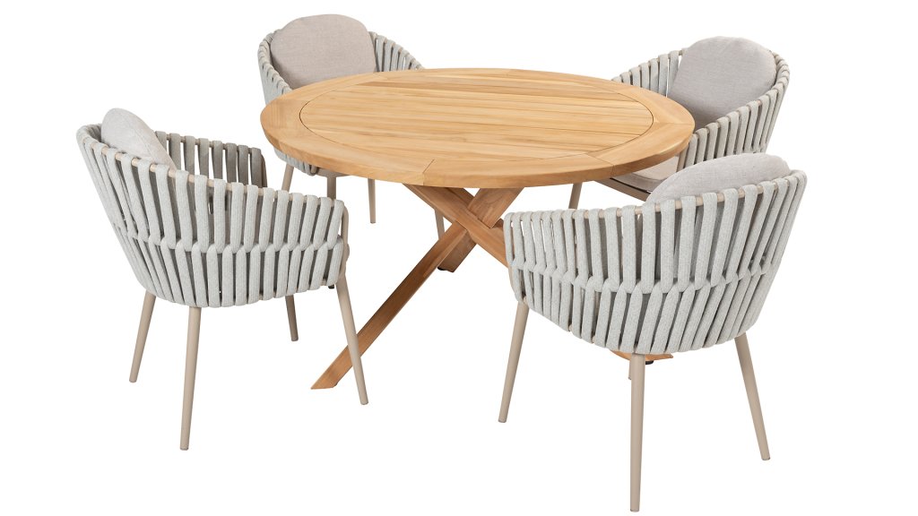Das Flaggschiff der Kollektion, so kann man diesen Tisch ruhig bezeichnen. Das hochwertige Teakholz in Kombination mit dem schönen Kreuzfuß machen diesen Taste by 4Seasons Prado Ø130cm Tisch zu einem Schmuckstück. Er lässt sich mit nahezu jedem Esszimmerstuhl aus unserer Kollektion kombinieren, sodass für jeden Geschmack etwas dabei ist. Optional kann er mit Prado Lazy Susan kombiniert werden. Die Platte ist sowohl in Teakholz als auch in Keramik erhältlich. Der Prado mit Teakholzplatte ist mit den Tischbeinen Teak, Latte und Anthrazit erhältlich. Sie lieben Keramik? Dann entdecken Sie hier den Prado Keramik mit den Tischbeinen Terre & Latte.