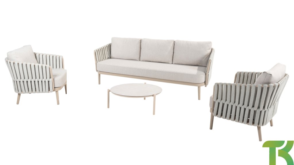 | Materialien Loungegruppe | Pulverbeschichtet Aluminium/Stahl, Rope |