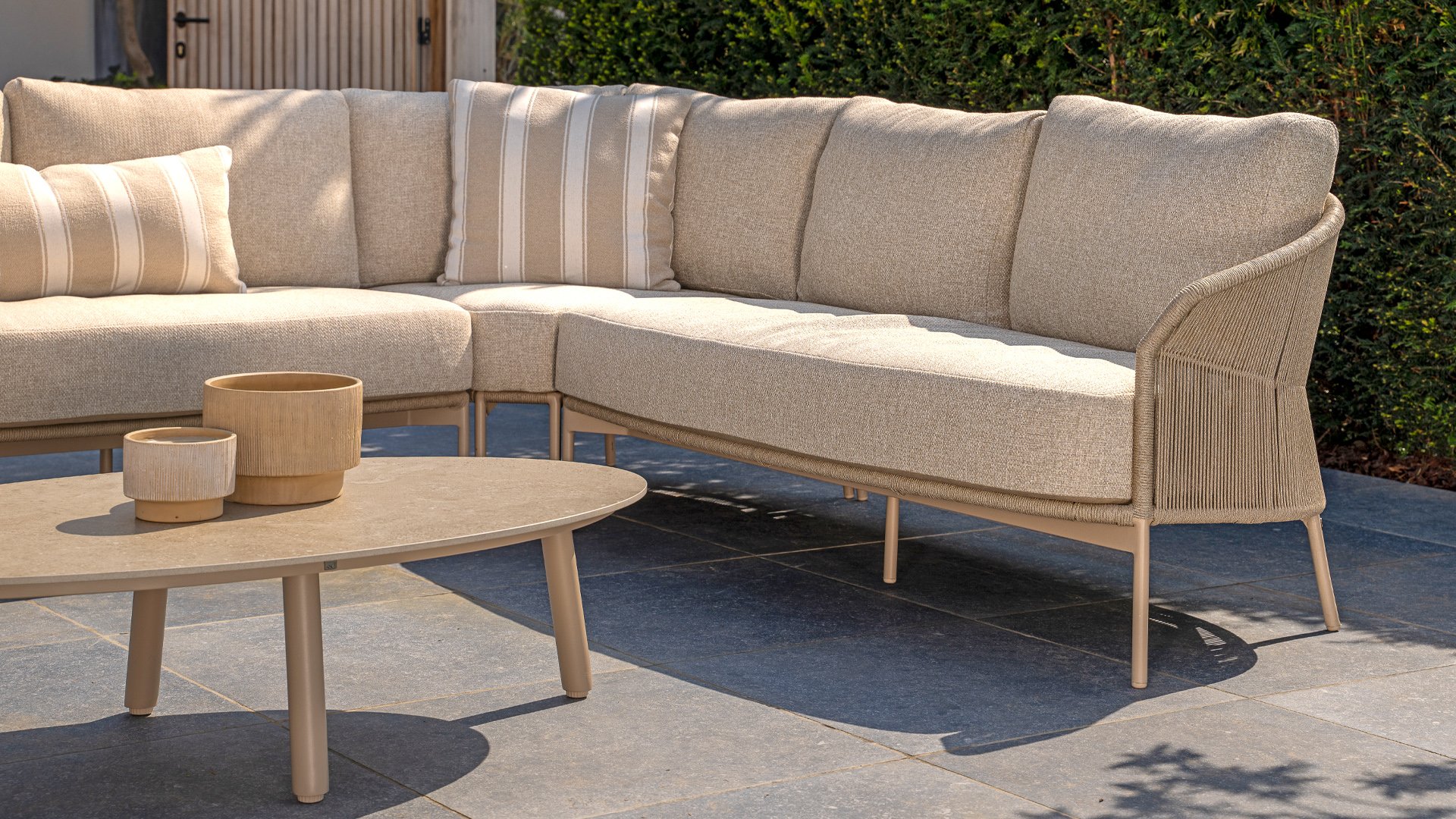 Verleihen Sie Ihrem Stil mit dem Florence Stil. Das wunderschöne Seildesign kombiniert mit luxuriösen Kissen sorgt für die perfekte Kombination aus Stil und Komfort. Genießen Sie ultimative Entspannung und entspannen Sie sich diesen Sommer. Erhältlich in zwei eleganten Farben: Taste Florence Terre Lounge – ein warmer, erdiger Farbton, der perfekt zu natürlichen Gartenelementen passt. Taste Florence Latte Lounge – eine helle, elegante Farbe für einen frischen, sommerlichen Look.