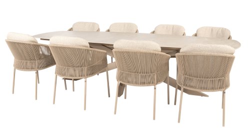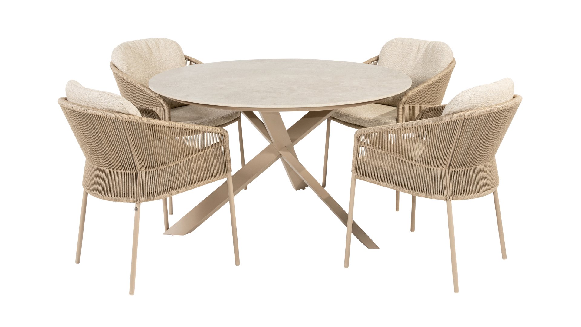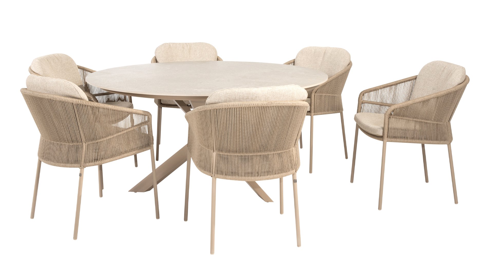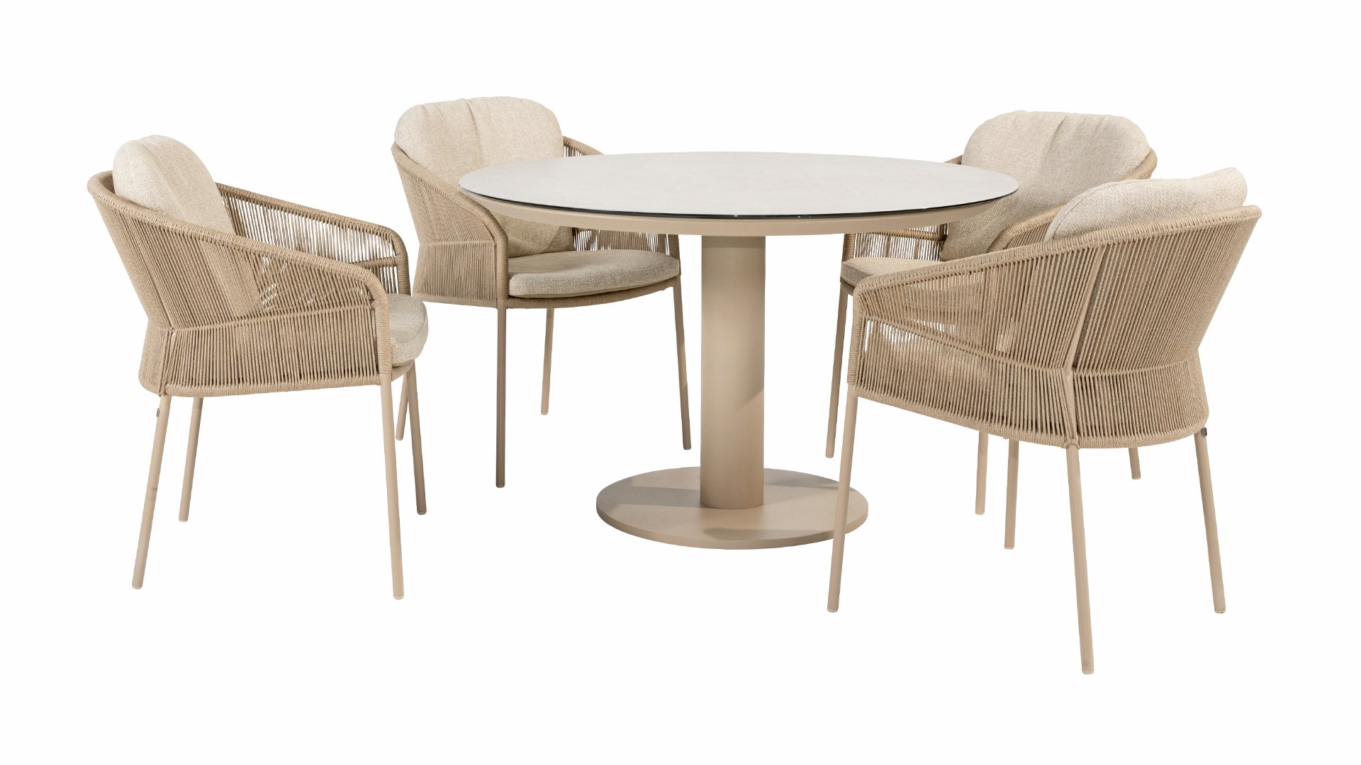 Inspiriert vom zeitlosen Charme Italiens zeichnet sich Florence durch sein dicht gewebtes Seilmuster und die raffinierte Trennung zwischen Rückenlehne und Sitzfläche aus, die einen modernen und eleganten Effekt erzeugen. Die bequemen Kissen bieten hervorragenden Sitzkomfort und machen dieses Esszimmerset perfekt für lange, entspannte Momente im Freien. Erhältlich in zwei eleganten Farben: Taste Florence Dining Terre – ein warmer, erdiger Farbton, der perfekt zu natürlichen Gartenelementen passt. Taste Florence Dining Latte – eine helle, elegante Farbe für einen frischen, sommerlichen Look.