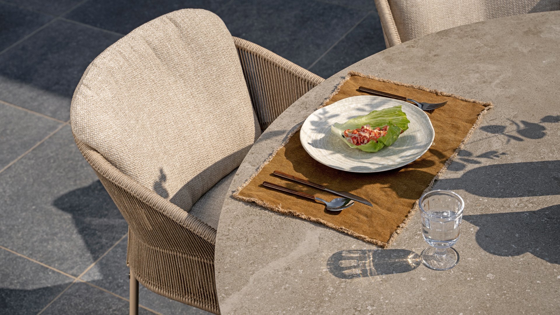 Inspiriert vom zeitlosen Charme Italiens zeichnet sich Florence durch sein dicht gewebtes Seilmuster und die raffinierte Trennung zwischen Rückenlehne und Sitzfläche aus, die einen modernen und eleganten Effekt erzeugen. Die bequemen Kissen bieten hervorragenden Sitzkomfort und machen dieses Esszimmerset perfekt für lange, entspannte Momente im Freien. Erhältlich in zwei eleganten Farben: Taste Florence Dining Terre – ein warmer, erdiger Farbton, der perfekt zu natürlichen Gartenelementen passt. Taste Florence Dining Latte – eine helle, elegante Farbe für einen frischen, sommerlichen Look.