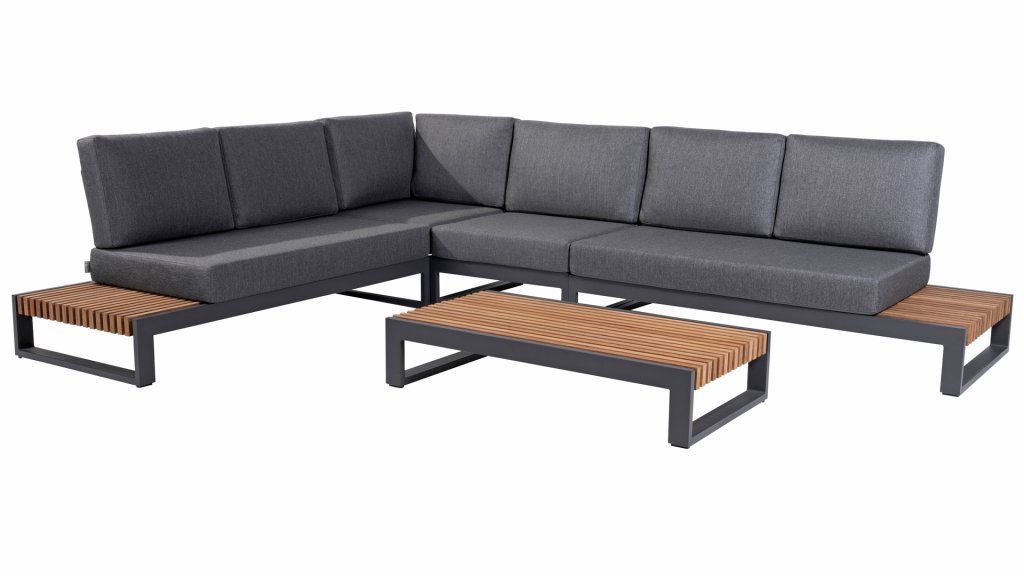 Das Gestell besteht aus pulverbeschichtetem Aluminium, in Kombination mit hochwertigen Teakplatten an der Seite. Die schmalen Lamellen des Teakholzes fallen sofort ins Auge. Durch die offenen Seiten mit Teakholzplatte haben Sie Ihr Getränk immer griffbereit! Die Kissen im Taste 4Seasons Kyoto Lounge Set sind sehr bequem und haben eine schmutz- und wasserabweisende Beschichtung, die sie widerstandsfähig gegen einen Regenschauer macht.