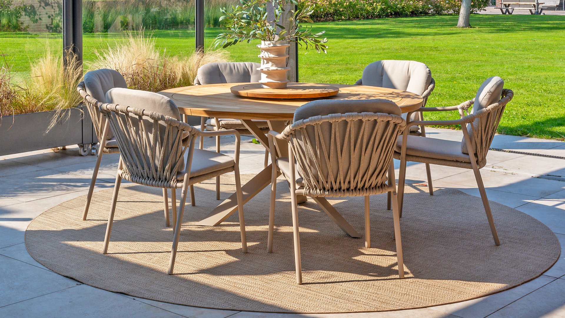 1 x Taste Prado Tisch Ø160cm Teak-Alu Latte