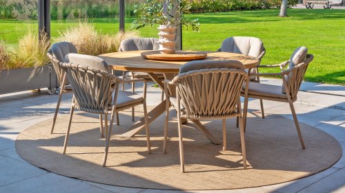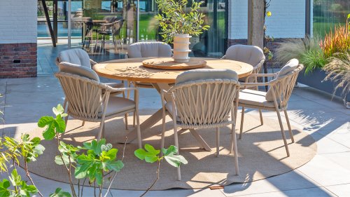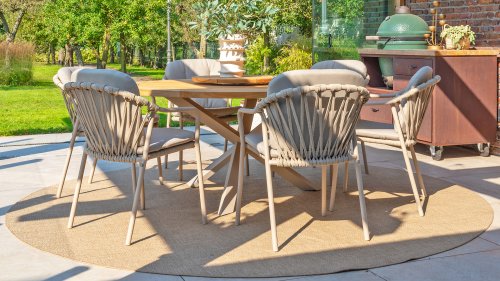 Gartenmöbel aus Teakholz bieten einen atemberaubenden Blick.Teakholz eignet sich besonders gut für den Einsatz im Außenbereich. Es ist resistent gegen Schädlinge und Pilze und widerstandsfähig gegen Sonne, Regen und Schnee. Mit der Zeit entwickelt das Teakholz eine silbergraue Patina. Gartenmöbel aus Teakholz bieten einen atemberaubenden Blick. Darüber hinaus ist es starkes Material und erfordert nur wenig Wartung. Wer die ursprüngliche Farbe des Teakholzes bevorzugt, kann durch regelmäßiges benutzen unser Pflegemittel ganz einfach das Vergrauen des Holzes verhindern.Darüber hinaus können Sie Teak mit grüner Seife reinigen. Durch Temperaturunterschiede und durch den Wechsel von Feuchtigkeit und Trockenheit können kleine Haarrisse entstehen. Es ist üblich, dass Man in dies Unvollkommenheiten findet, diese Unregelmäßigkeiten sind kennzeichnend für dieses Produkt. Diese Unregelmäßigkeiten können nie einen Anlass zu Reklamation, Garantie oder Claim formen. Es betrifft eine Unterschrift von Originalität!  Wir gewähren Garantie auf alle Produktions- und Konstruktionsfehler. Die Wirkung von Teakholz ist nicht enthalten. Wenn Sie sich für Teakholz entscheiden, erwarten wir, dass Sie diese Eigenschaften zu schätzen wissen. Eventuell auftretende Haarrisse, Äste im Teakholz und raue Oberflächen im Laufe der Zeit fallen nicht unter unsere Garantie. Diese Eigenschaften verleihen dem Teakholz seinen eigenen Charakter und sind Teil der Optik. Seien Sie vorsichtig mit einem Blumentopf oder einer Vase auf Ihrem Gartentisch aus Teakholz, da dies zu hartnäckigen Kreisen oder Farbunterschieden führen kann.