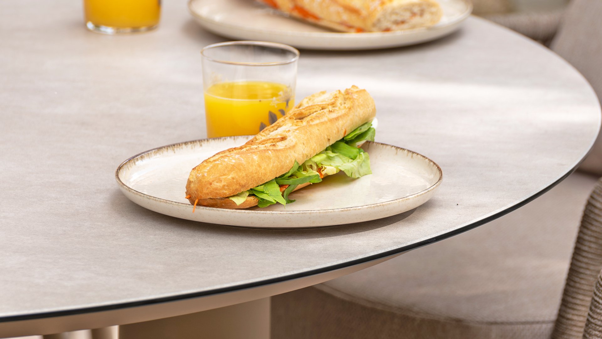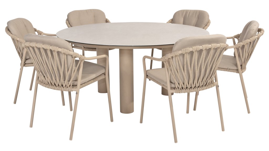 Der Donato Tisch ist mit einem Durchmesser von 160 cm eine tolle Ergänzung für jeden Essbereich und eignet sich ideal für gesellige Runden. Das Besondere an diesem Tisch ist die Gestaltung seiner Beine: Mit insgesamt drei dreieckig angeordneten Beinen bietet er nicht nur Stabilität, sondern auch eine markante, verspielte Optik. Die Keramik-Glas-Tischplatte verleiht ihm eine luxuriöse Ausstrahlung und ist gleichzeitig pflegeleicht. In der Taste by 4 Seasons Outdoor Donato-Serie gibt es einige Möglichkeiten, so ist er als Esstisch in den Farben erhältlich: Taste 4Seasons Donato Tisch Ø160cm Latte & Taste 4Seasons Donato Tisch Ø160 cm Terre, was es Ihnen ermöglicht, das perfekte Match für Ihr Interieur zu wählen. Um die Mayonnaise oder die Milch an die Person gegenüber zu reichen, fügen Sie einfach den: Taste 4Seasons Donato Lazy Susan dem Ganzen hinzu. Außerdem ist auch eine Low-Dining-Variante in der Farben Latte & Terre erhältlich, ideal für ein informelles und entspanntes Speiseerlebnis: Taste 4Seasons Donato Low Dining Tisch Ø160cm Latte, Taste 4Seasons Donato Low-Dining Tisch Ø160 cm Terre. Was gibt es noch?