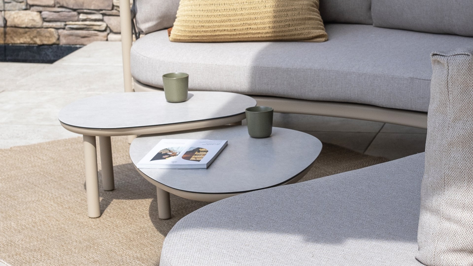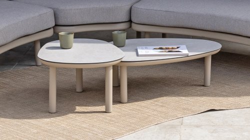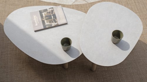 Verleihen Sie Ihrem Wohnraum einen Hauch von Eleganz und Raffinesse mit der Couchtischserie Monroe von Taste by 4 Seasons Outdoor. Dieses wunderschöne Set besteht aus zwei organisch geformten Tischen mit kieselsteinförmigen Tischplatten – verspielt und doch perfekt ausbalanciert. Dank seines unverwechselbaren Designs wird der Monroe zum stilvollen Blickfang in jedem Innen- und Außenbereich.