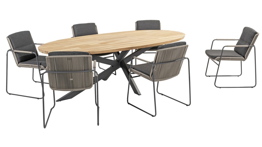 1 x Taste Prado Ellips Tisch 240x115cm Teak-Alu Anthrazit
