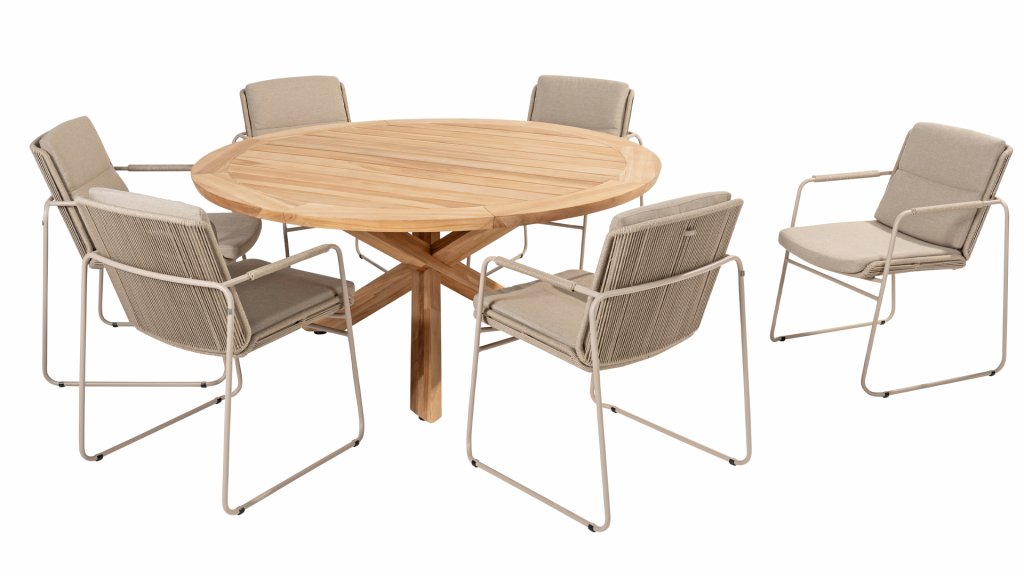 Diesen Tisch können Sie getrost als das Highlight der Kollektion bezeichnen. Das hochwertige Teakholz in Kombination mit dem Teak-Kreuzbein machen diesen Taste by 4Seasons Prado 160cm Tisch zu einem Schmuckstück. Mit fast jedem Esszimmerstuhl aus unserer Kollektion ist für jeden etwas dabei. Kann mit Prado Lazy Susan kombiniert werden und ist mit einem anthrazitfarbenen oder frost grey Aluminiumbein erhältlich.