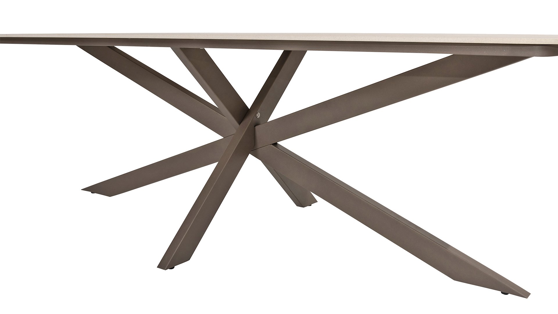 Ein wunderschöner, eleganter Tisch mit einer atemberaubenden ovalen Keramikplatte, erhältlich in 240 cm oder 300 cm. Die Platte strahlt nicht nur Eleganz aus, sondern besticht auch durch ihr markantes, modernes Aussehen. Das markante Kreuzbein ist in drei Farben erhältlich, sodass Sie diesen Tisch mühelos an Ihre Bedürfnisse und Vorlieben anpassen können. Ob Industrieschwarz, warmes Latte oder schickes Terre – jede Farbe verleiht dem Tisch einen einzigartigen Charakter und einen Hauch von Luxus.