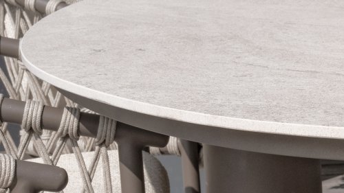 Mit seinen großzügigen Abmessungen bietet dieser Tisch ausreichend Platz für ein gemütliches Essen mit Freunden oder ein intimes Abendessen mit der Familie. Die Kombination aus raffinierter Keramik und dem starken, stilvollen Bein macht diesen Tisch nicht nur funktional, sondern setzt auch ein atemberaubendes Statement in Ihrem Garten.