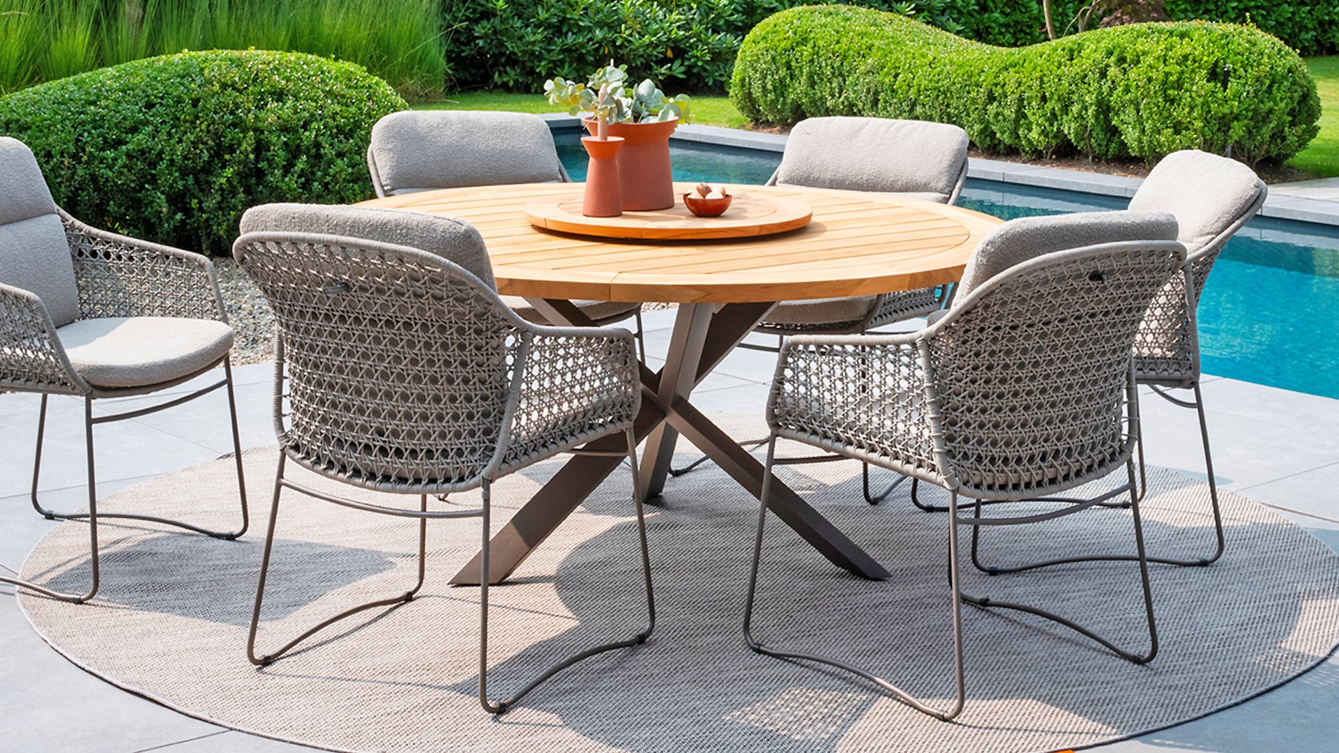 Gartenmöbel aus Teakholz bieten einen atemberaubenden Blick.Teakholz eignet sich besonders gut für den Einsatz im Außenbereich. Es ist resistent gegen Schädlinge und Pilze und widerstandsfähig gegen Sonne, Regen und Schnee. Mit der Zeit entwickelt das Teakholz eine silbergraue Patina. Gartenmöbel aus Teakholz bieten einen atemberaubenden Blick. Darüber hinaus ist es starkes Material und erfordert nur wenig Wartung. Wer die ursprüngliche Farbe des Teakholzes bevorzugt, kann durch regelmäßiges benutzen unser Pflegemittel ganz einfach das Vergrauen des Holzes verhindern.Darüber hinaus können Sie Teak mit grüner Seife reinigen. Durch Temperaturunterschiede und durch den Wechsel von Feuchtigkeit und Trockenheit können kleine Haarrisse entstehen. Es ist üblich, dass Man in dies Unvollkommenheiten findet, diese Unregelmäßigkeiten sind kennzeichnend für dieses Produkt. Diese Unregelmäßigkeiten können nie einen Anlass zu Reklamation, Garantie oder Claim formen. Es betrifft eine Unterschrift von Originalität! Wir gewähren Garantie auf alle Produktions- und Konstruktionsfehler. Die Wirkung von Teakholz ist nicht enthalten. Wenn Sie sich für Teakholz entscheiden, erwarten wir, dass Sie diese Eigenschaften zu schätzen wissen. Eventuell auftretende Haarrisse, Äste im Teakholz und raue Oberflächen im Laufe der Zeit fallen nicht unter unsere Garantie. Diese Eigenschaften verleihen dem Teakholz seinen eigenen Charakter und sind Teil der Optik. Seien Sie vorsichtig mit einem Blumentopf oder einer Vase auf Ihrem Gartentisch aus Teakholz, da dies zu hartnäckigen Kreisen oder Farbunterschieden führen kann.