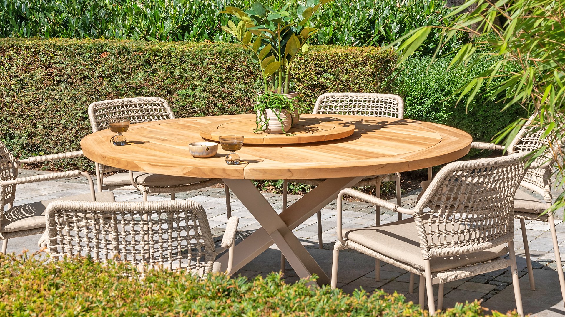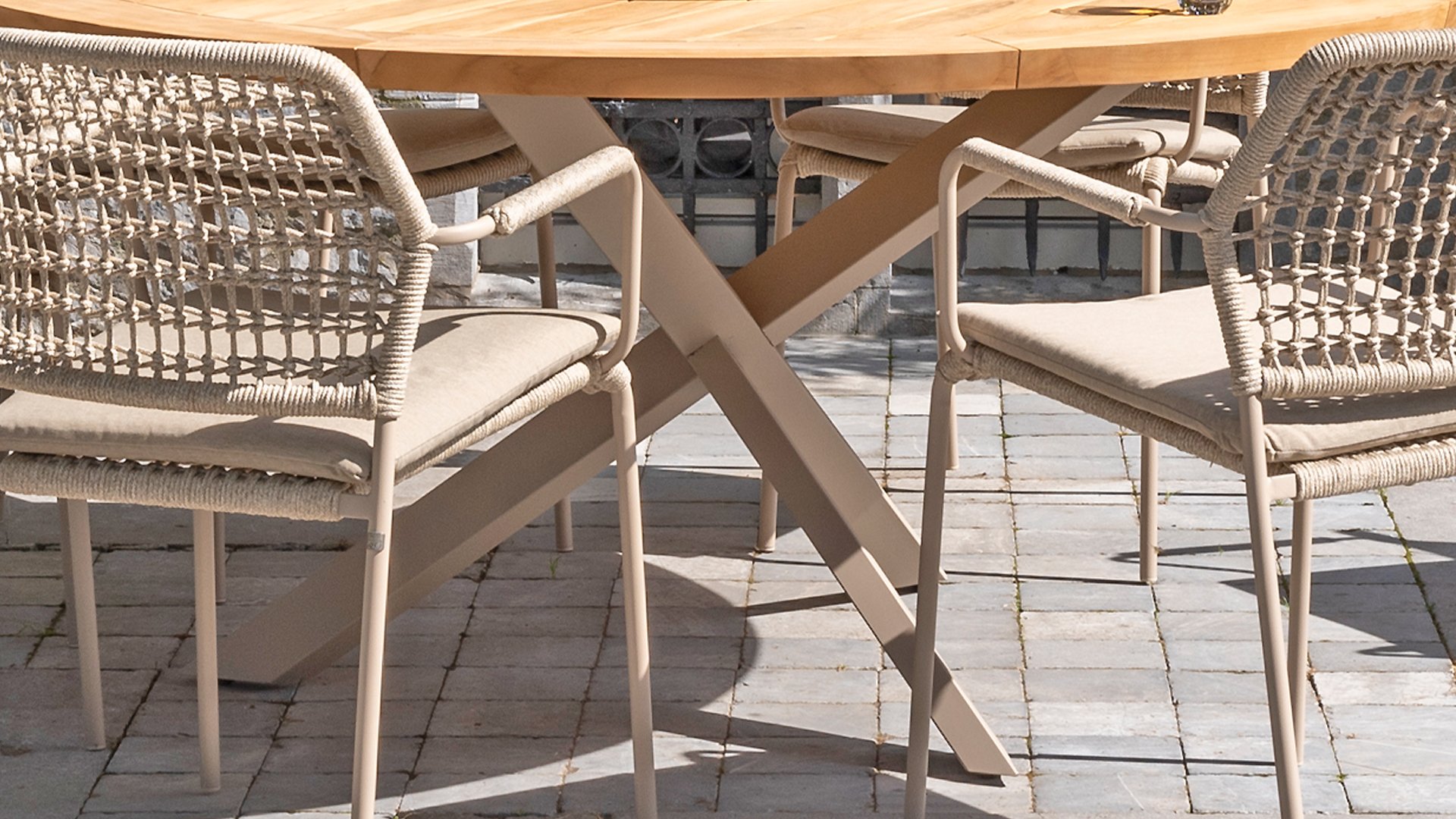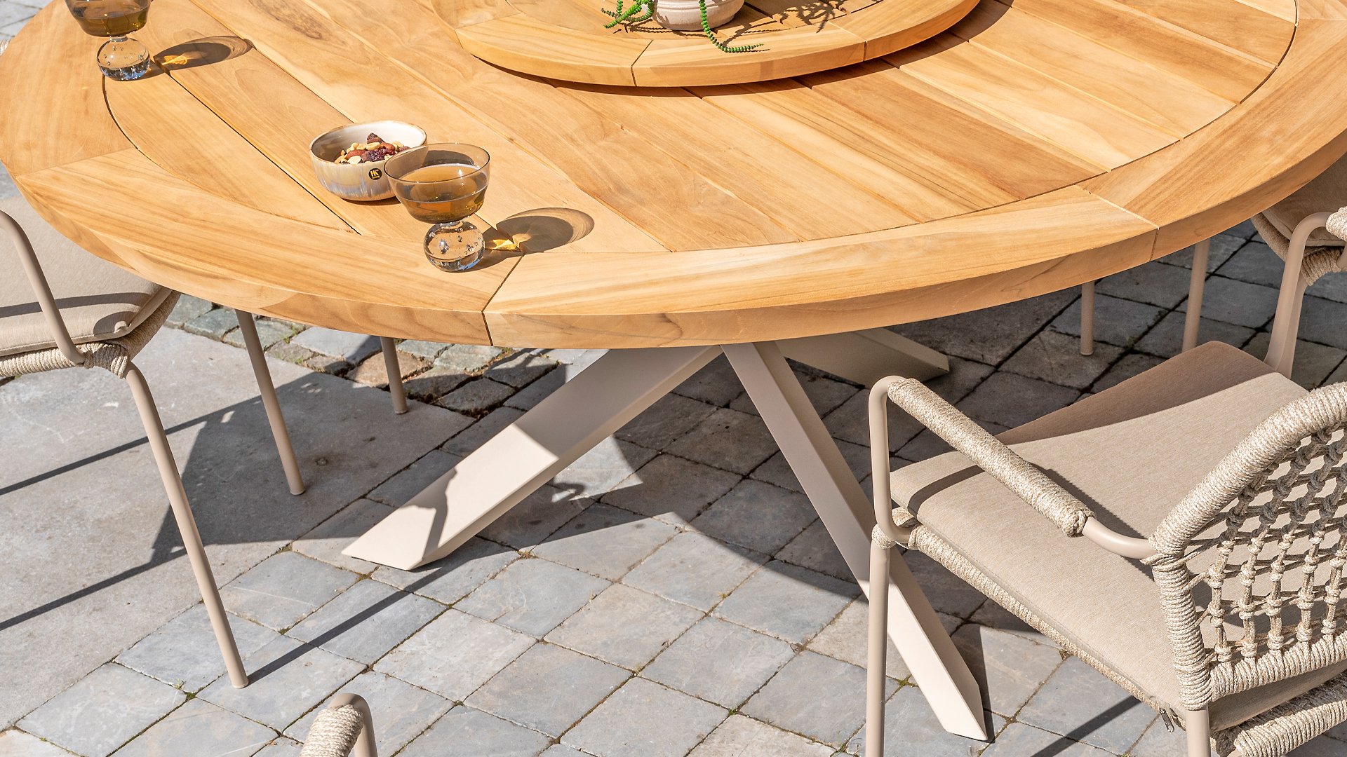 1 x Taste Prado Tisch Ø160cm Teak-Alu Latte