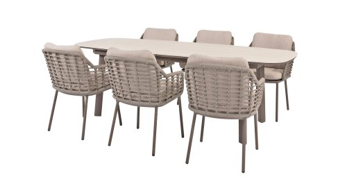 Taste by 4 Seasons Outdoor Puglia Dining – Holen Sie sich das warme, authentische Flair Süditaliens auf Ihre eigene Terrasse. Diese Kollektion ist die ideale Wahl für alle, die eine Kombination aus hochwertigem Design, organischen Formen und maximalem Sitzkomfort suchen. Der Name dieser Serie kommt nicht von ungefähr: Das Design der Möbel spiegelt den südeuropäischen Charme perfekt wider. Die organischen Linien sowie die erdigen und hellen Farbtöne bringen sofort ein entspanntes, sommerliches Ambiente in Ihren Garten.