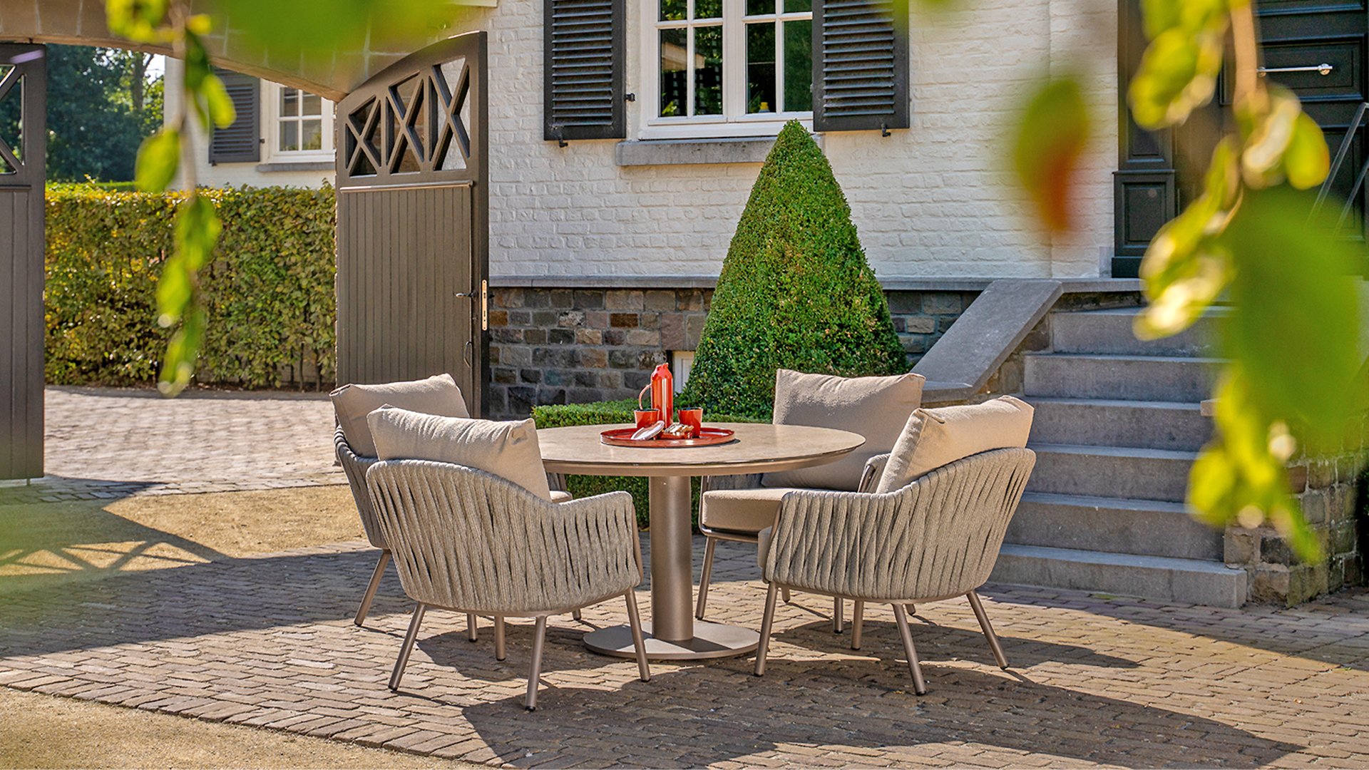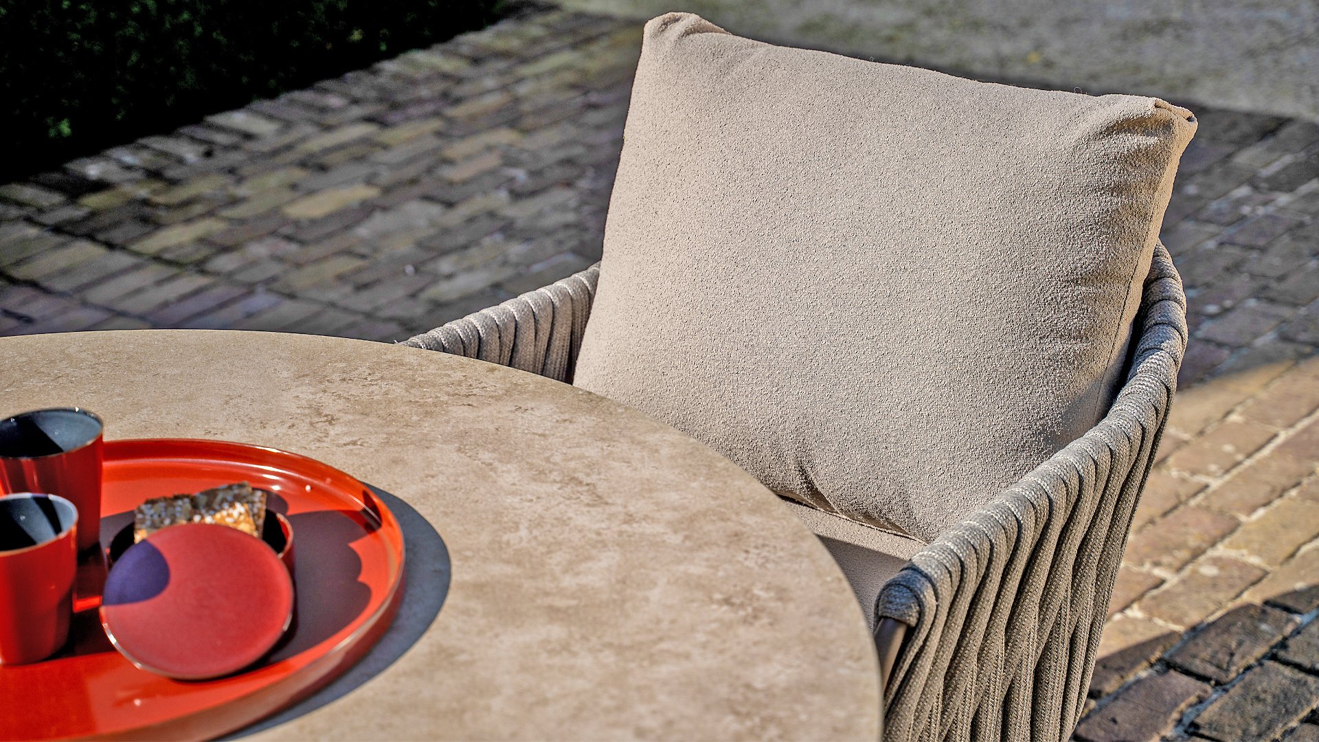 Die hochwertig bedruckte Keramikplatte sorgt nicht nur für eine luxuriöse Optik, sondern ist auch außergewöhnlich robust, kratzfest und pflegeleicht. Das zentrale Bein bietet maximale Beinfreiheit und verleiht dem Tisch einen modernen, luftigen Look. Taste by 4 Seasons Outdoor Sarah ist in zwei Ausführungen und zwei Farben erhältlich. Der Tisch ist in zwei Größen erhältlich: 120x75cm (Dining) und 130x69cm (Low Dining) in den Farben Latte und Terre. Entdecken Sie sie unten: