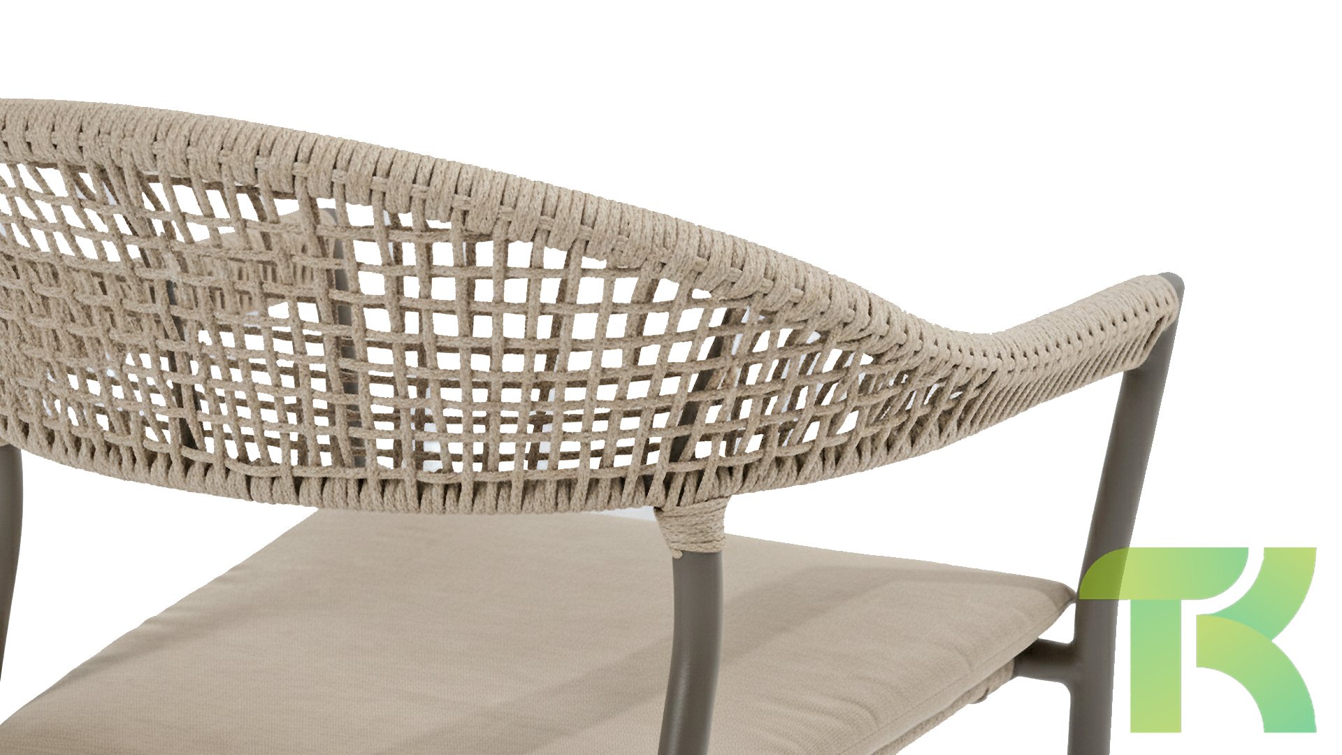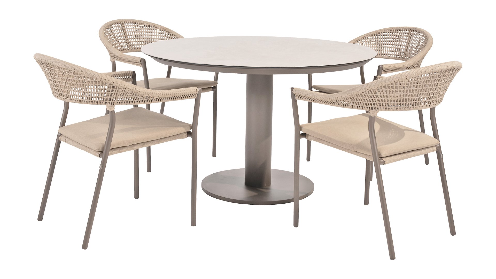 Die Terrassenmöbelserie Taste Sienna besticht durch ihren einzigartigen Stil, der durch moderne Seilelemente noch unterstrichen wird! Die Schönheit liegt im Detail. Die Rückenlehne der Sienna-Essgruppe von Taste by 4Seasons ist aus Seil geflochten und bietet so eine stabile und zugleich bequeme Sitzfläche. Das Gestell erzeugt ein verspieltes und minimalistisches Zusammenspiel fließender Linien und bildet eine solide Basis. Ein wahrer Augenschmaus! Die Sienna ist in den Farben Latte, Terre und Anthrazit erhältlich.