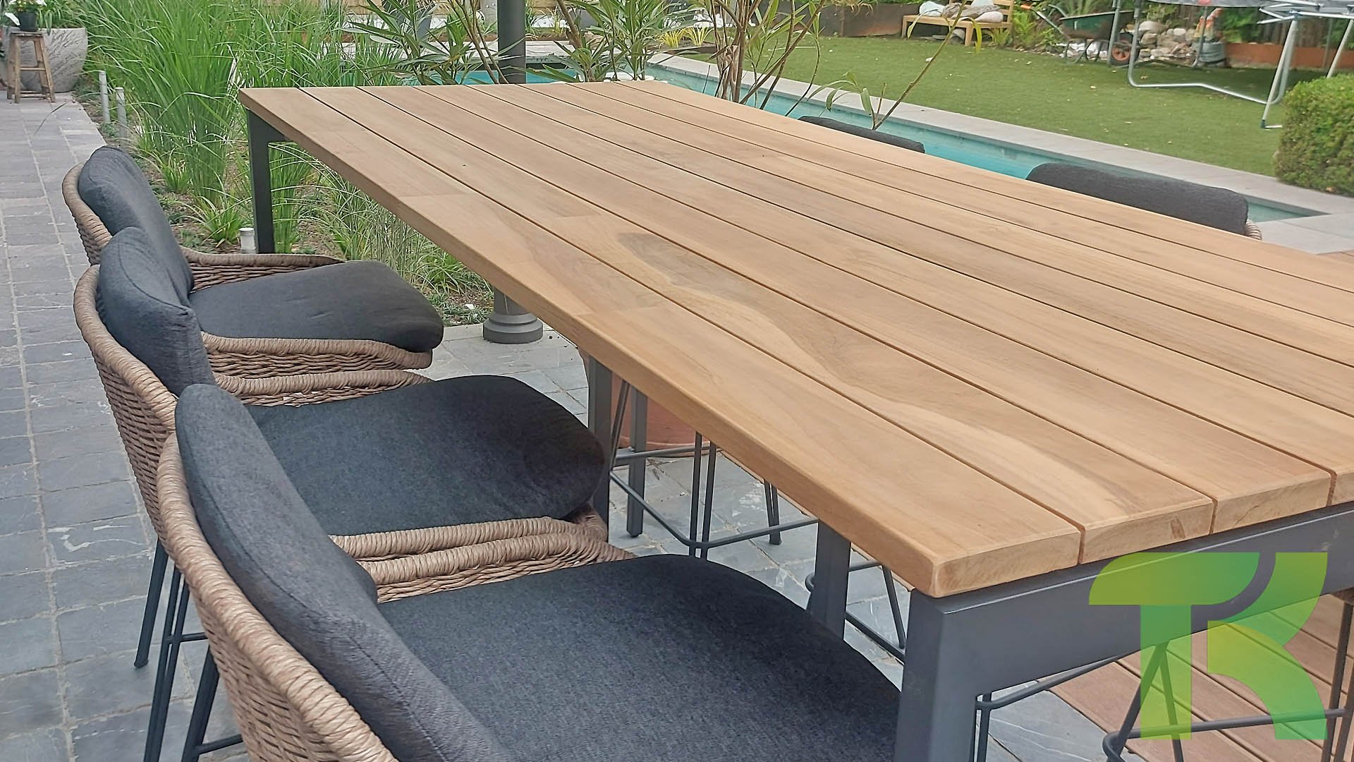 Gartenmöbel aus Teakholz bieten einen atemberaubenden Blick.Teakholz eignet sich besonders gut für den Einsatz im Außenbereich. Es ist resistent gegen Schädlinge und Pilze und widerstandsfähig gegen Sonne, Regen und Schnee. Mit der Zeit entwickelt das Teakholz eine silbergraue Patina. Gartenmöbel aus Teakholz bieten einen atemberaubenden Blick. Darüber hinaus ist es starkes Material und erfordert nur wenig Wartung. Wer die ursprüngliche Farbe des Teakholzes bevorzugt, kann durch regelmäßiges benutzen unser Pflegemittel ganz einfach das Vergrauen des Holzes verhindern.Darüber hinaus können Sie Teak mit grüner Seife reinigen. Recycltes Teak: Es ist üblich, dass Man in dies Unvollkommenheiten findet, diese Unregelmäßigkeiten sind kennzeichnend für dieses Produkt. Diese Unregelmäßigkeiten können nie einen Anlass zu Reklamation, Garantie oder Claim formen. Es betrifft eine Unterschrift von Originalität!